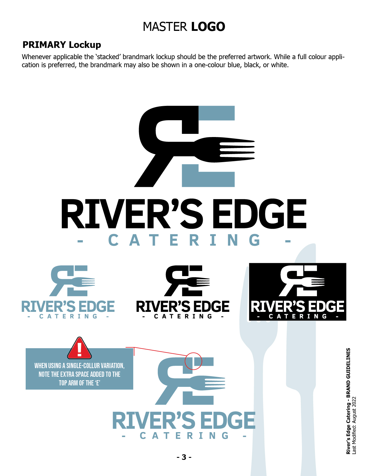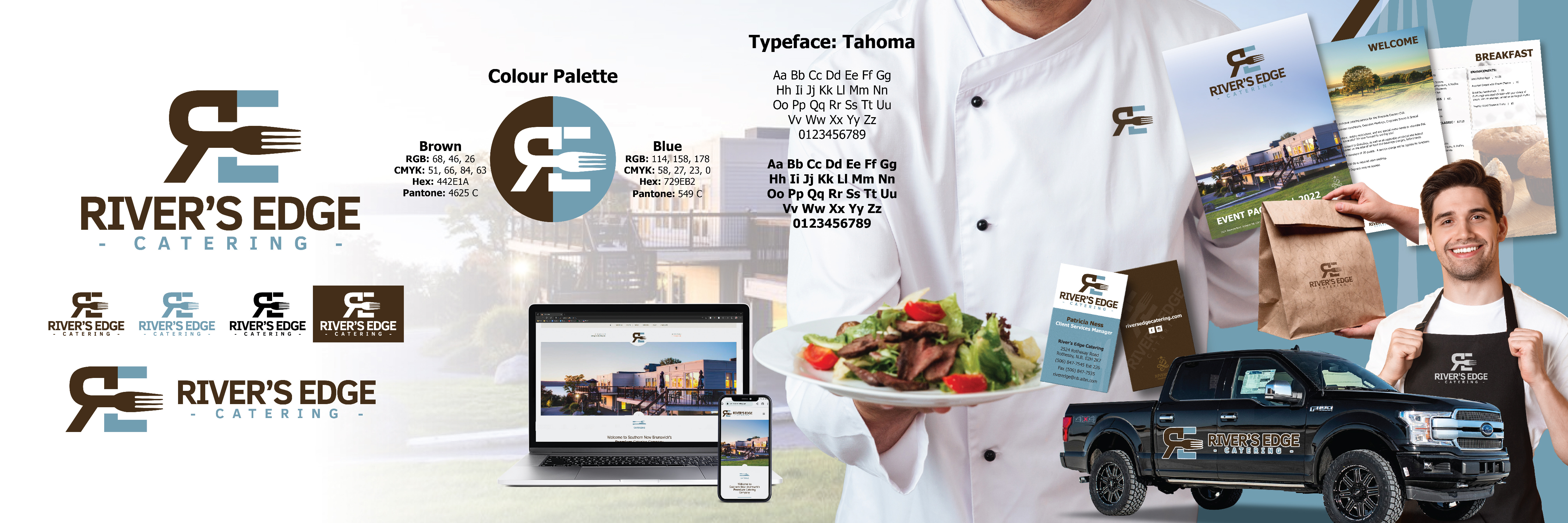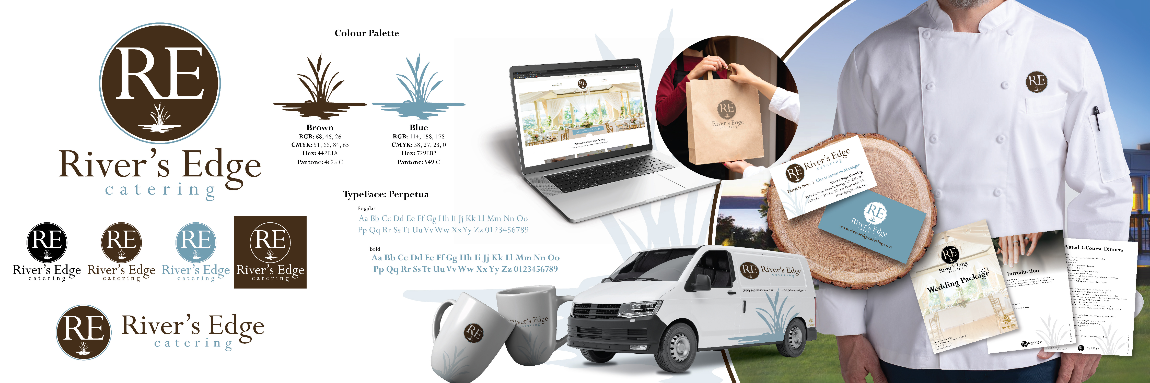 I had worked with the folks from River’s Edge Catering as a server in banquets many, many years ago. They reached out in November of 2022 on the possibility of having me put together a simple brochure-style website for them. I saw it as the perfect opportunity to update their brandmark and their visual identity, and pitched them the idea.