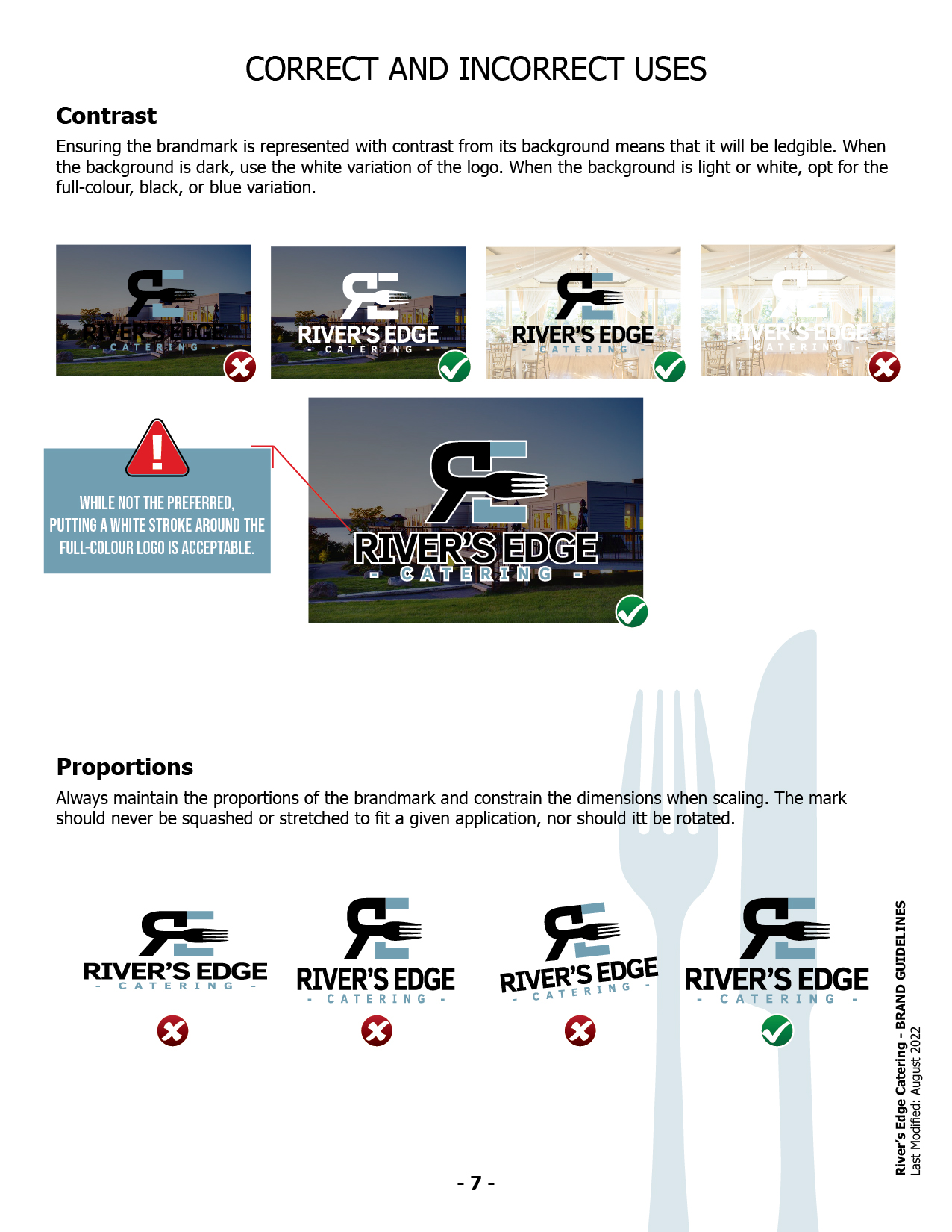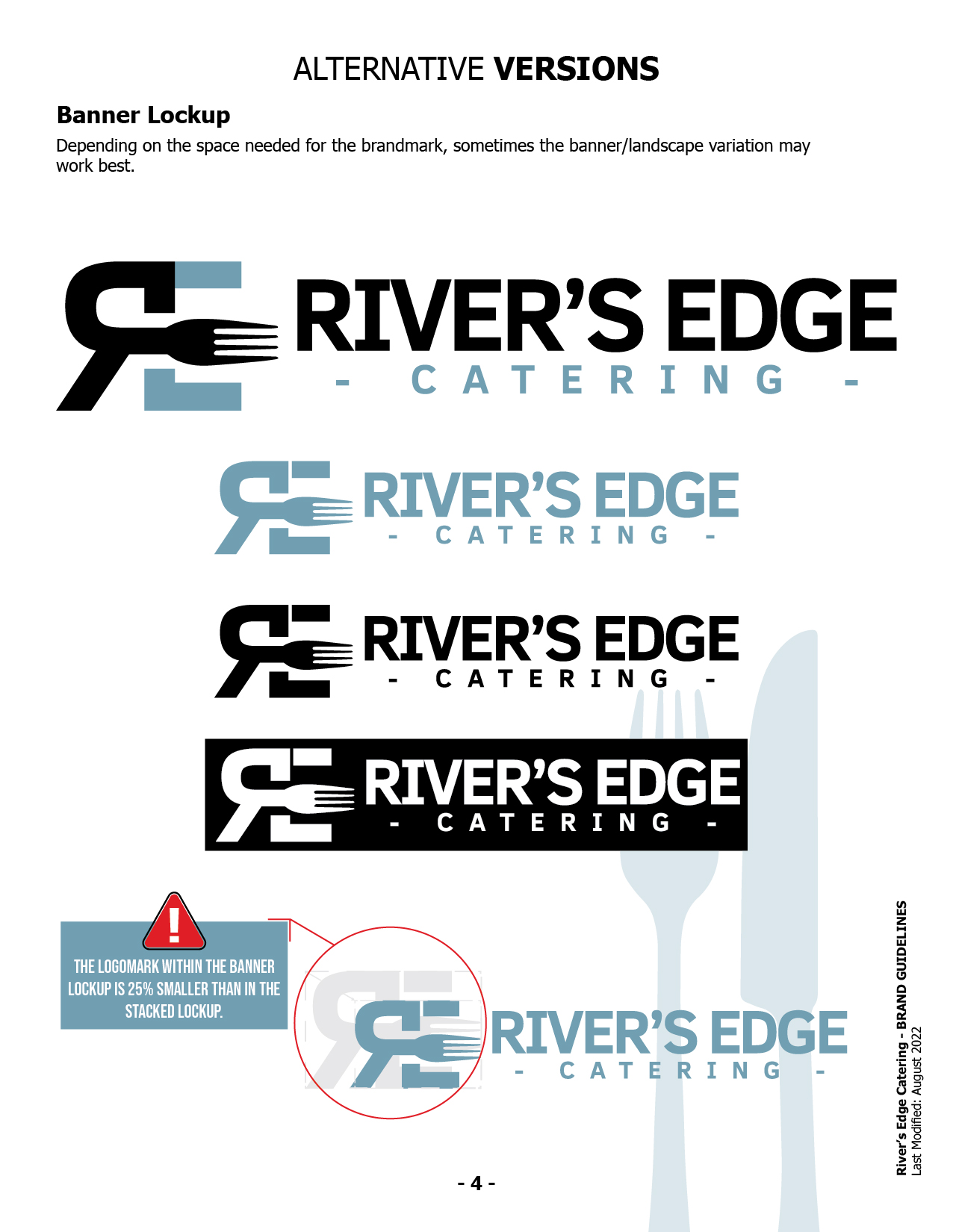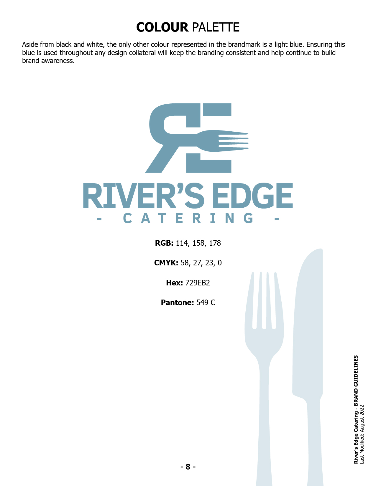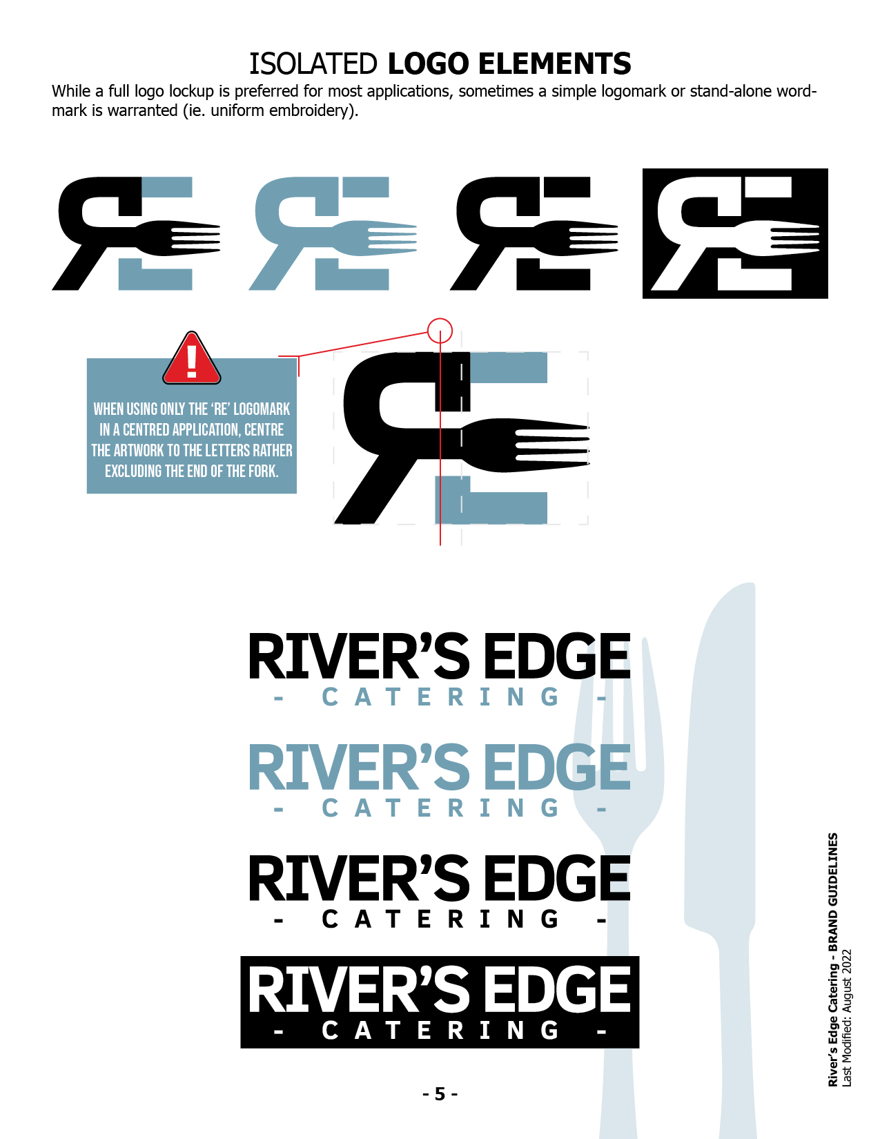 I had worked with the folks from River’s Edge Catering as a server in banquets many, many years ago. They reached out in November of 2022 on the possibility of having me put together a simple brochure-style website for them. I saw it as the perfect opportunity to update their brandmark and their visual identity, and pitched them the idea.